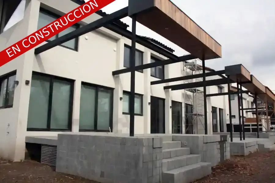 Descripción del Proyecto: Este proyecto de construcción en la Comuna de Lo Barnechea ofrece cuatro casas exclusivas de 300 m² cada una. Las viviendas cuentan con dos niveles (piso 1 y piso 2), y una de ellas incluye un subterráneo destinado a bodegaje y gimnasio. Cada casa dispone de terrazas, quinchos y piscinas privadas para sus propietarios. Las viviendas se destacan por sus ventanas de termopanel, fachadas con aislación EIFS y sistema Volcapol interior. La cubierta es de estructura metálica con aislación bajo cubierta y tejas en la superficie.
